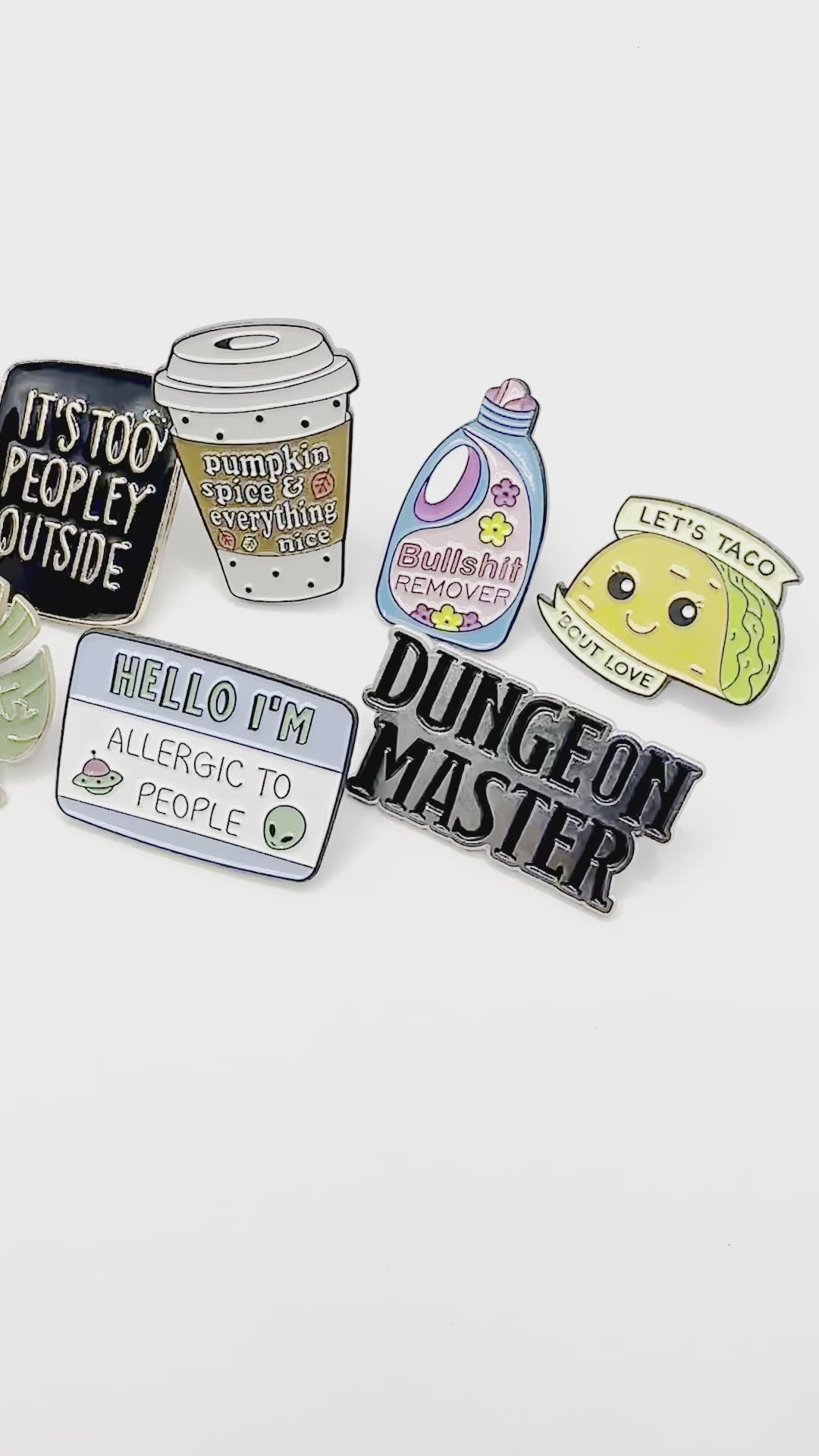 Add a touch of humor to your collection with the Hello I’m Allergic to People enamel pin — a witty and quirky accessory for your jacket, bag, or pin board!