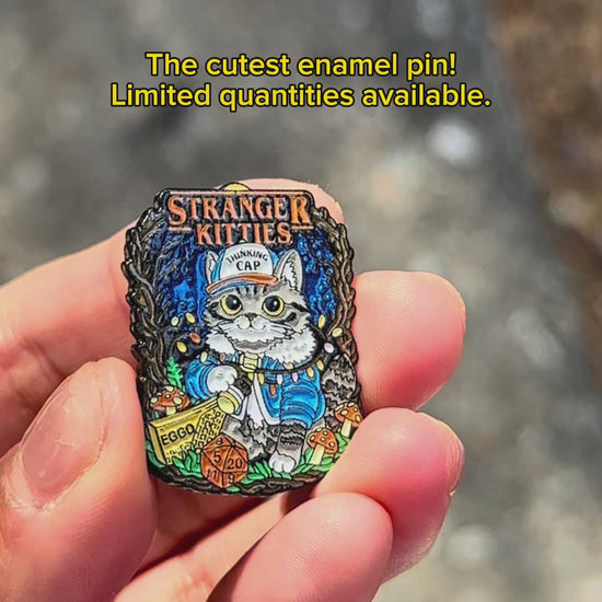 For fans of mysterious worlds and retro vibes, the Stranger Kitties enamel pin is a playful nod to Stranger Things—with a feline twist. Featuring curious kitties inspired by the strange and supernatural, this pin is perfect for cat lovers who also love a little weird.